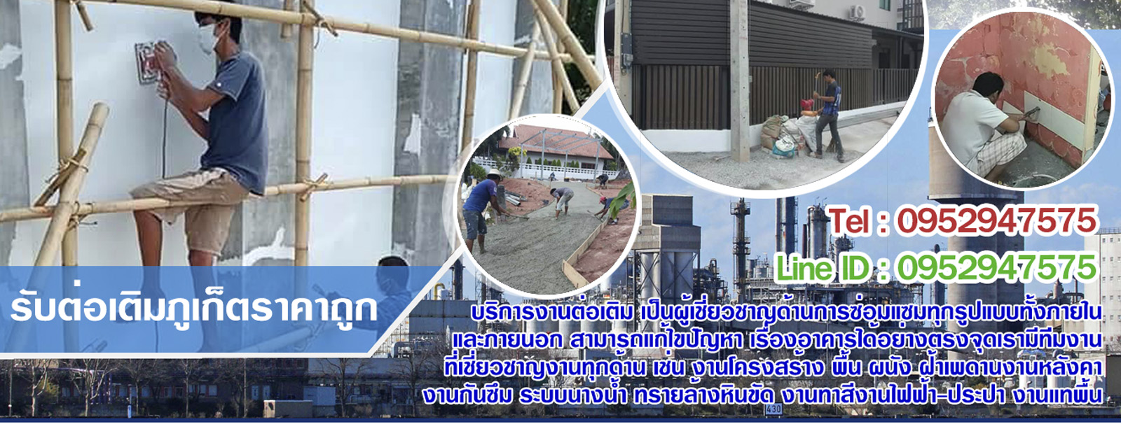 "บริการด้านงานซ่อมแซม ต่อเติม บ้าน อาคาร โรงงาน สำนักงาน ออฟฟิศ งานเล็กงานใหญ่ ดูแลได้หมดยินดีให้บริการ"